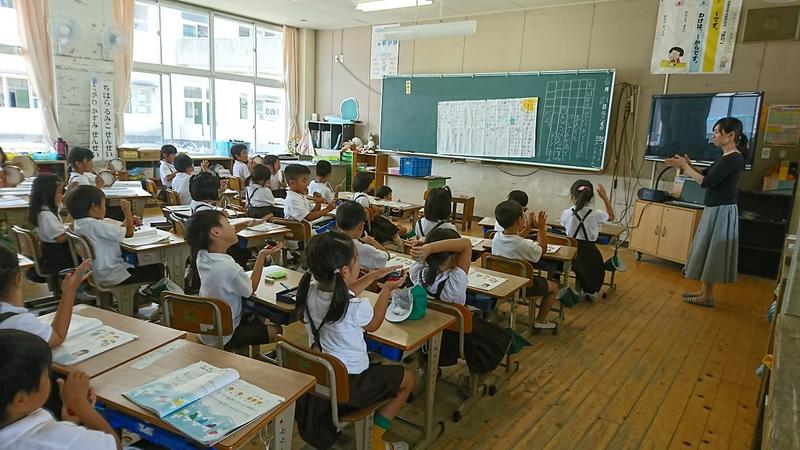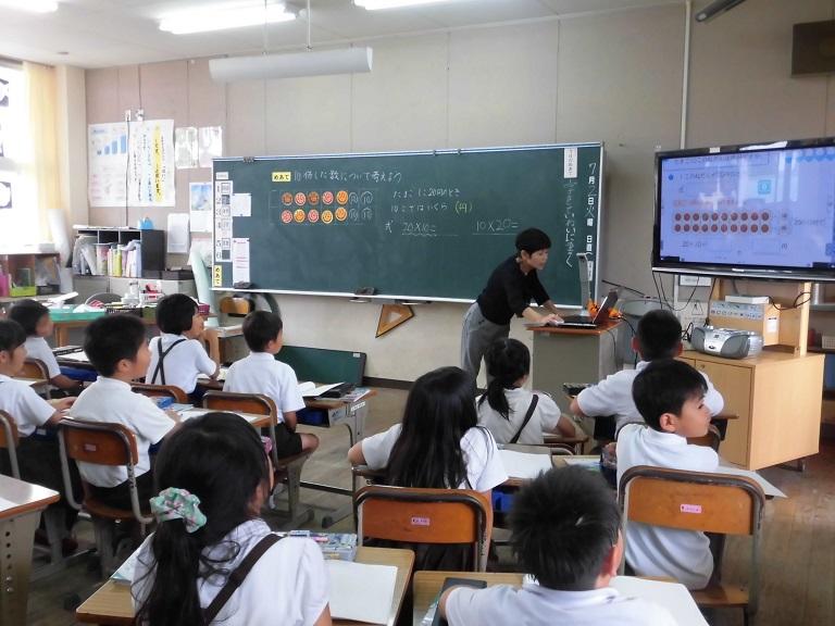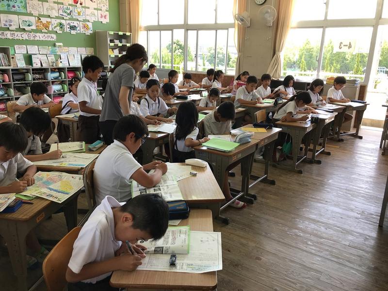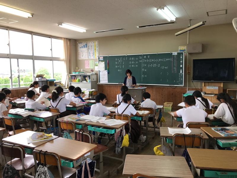 4年生の授業の様子です。担任の先生の話をしっかりと聞いて学習していました。