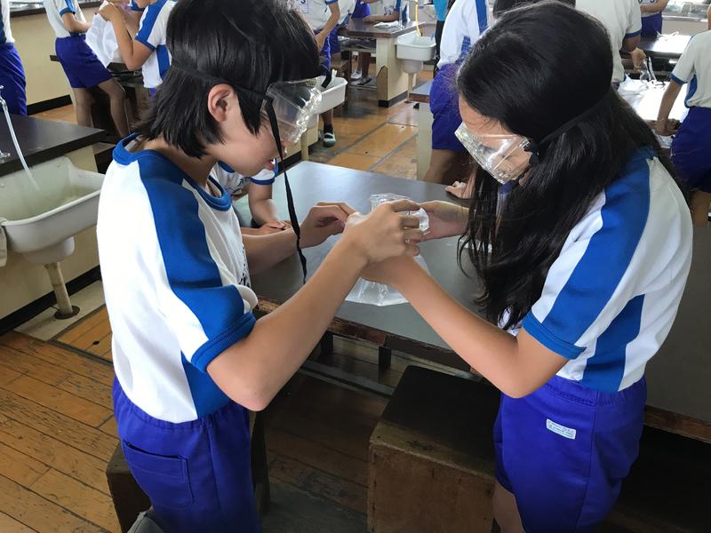 5年生の家庭科では、お湯を沸かし、お茶を入れました。