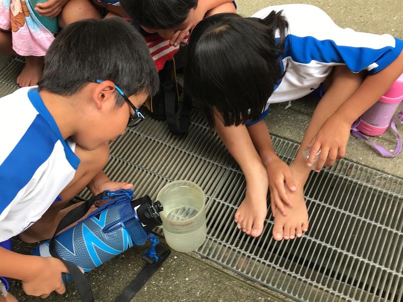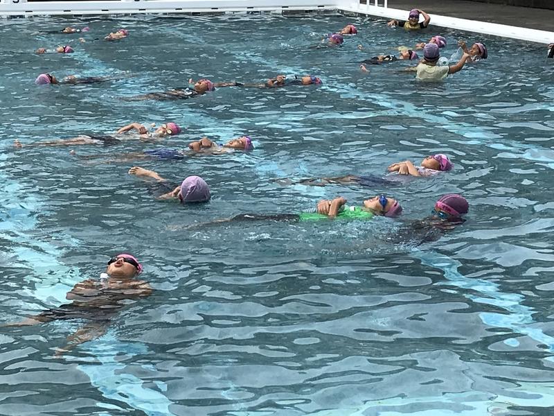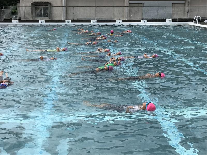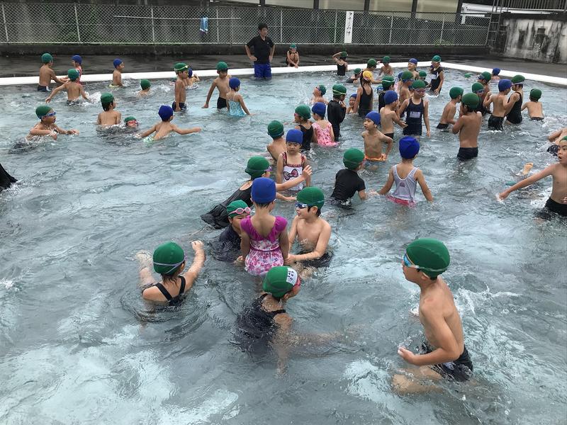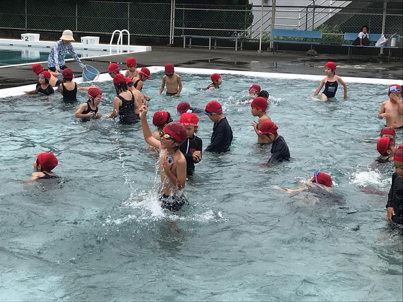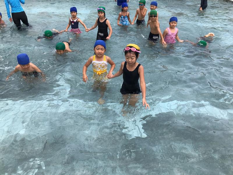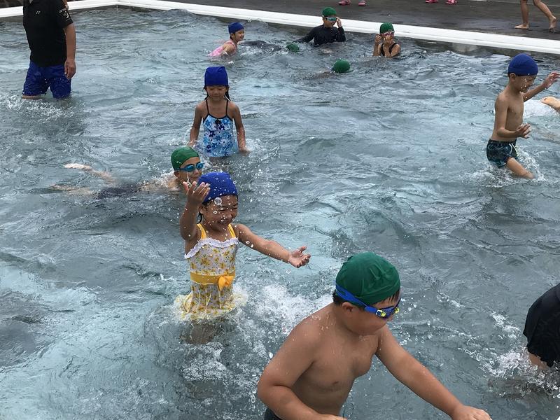 服を着たまま、泳ぎました。重くて泳げない子もいました。