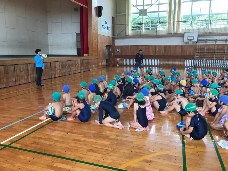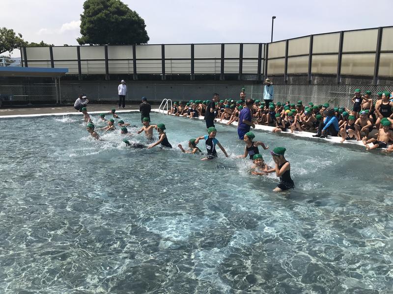 本日は、3年生で着衣泳の授業がありました。着衣泳とは、服を着たまま川や海に落ちたとき、どう対処すればよいかを学ぶ学習です。普段の水泳では楽に泳げる子も、着衣のままだと泳ぎにくいと感じるはずです。この泳ぎにくさを体感し、助けが来るまで、どう浮き続けるかを学ぶことが大切です。体力を温存するために、むやみに泳がず、慌てず暴れず、静かに浮き続けること。そのためには、浮きやすいペットボトルなどを投げてもらったり、近くの大人に助けを求めに行ったりするなど、大切なことをこの学習で学ぶことができます。真剣に学び、いざというときに役立ててほしいと思います。