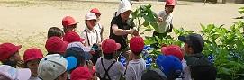 1年生が朝顔を育ててます。ずいぶん成長してきました。
