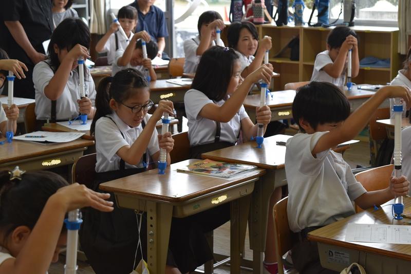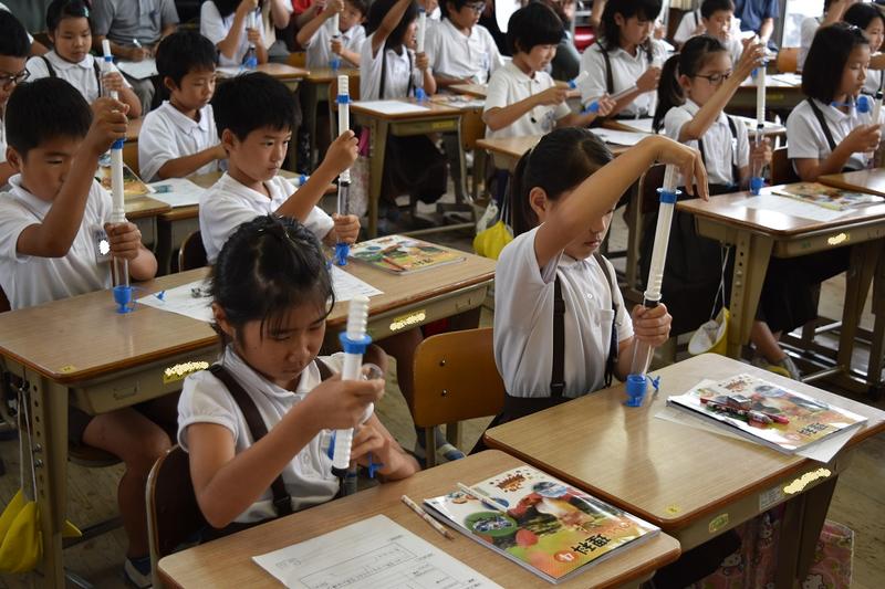 理科学習「すった空気のゆくえを調べよう」の実験です。