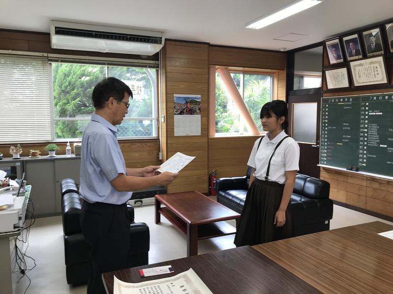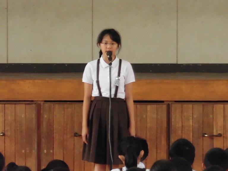校内の出発式で校長先生からお話がありました。子どもたちは真剣な表情で聞いてました。