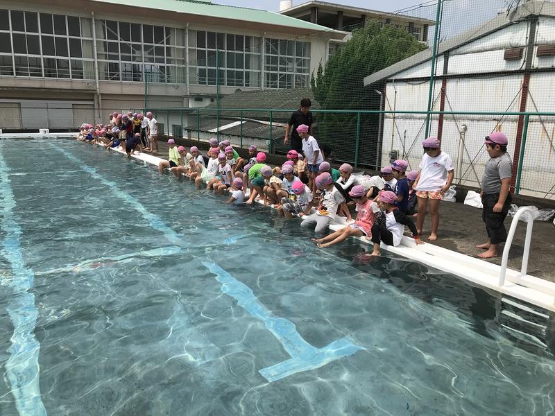 本日は、「やちわっ子の会」の一貫としてプール交流を実施しました。「やちわっ子の会」とは、第四中学校区内のこども園、保育園、小学校、中学校の円滑な連携を目指して、各学校園の交流や幼児・児童・生徒の情報を交換する会です。今回は2年2組・3組の児童と園児との交流会で、25名の園児が本校プールに来てくれました。2年生はお兄さん、お姉さんとして大いに活躍している姿がありました。優しく手をさしのべたり、笑顔で話しかけたりする姿は、とても清々しく見えました。本校プールを初めて見た園児は「大き~い。」「水族館みた~い。」「深そう~。」と様々な感想を口にしていました。プールに入ると一緒に歩いたり、水をかけ合ったりと楽しく交流ができていました。