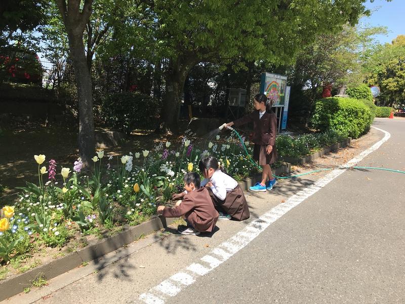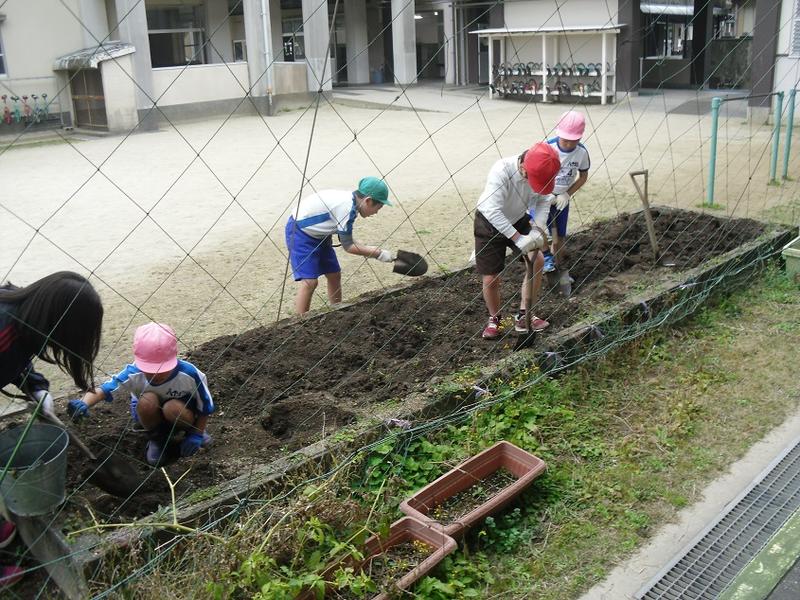 スコップで耕したり、草を取ったり自分たちの花壇を大切にしている様子がよく分かりました。