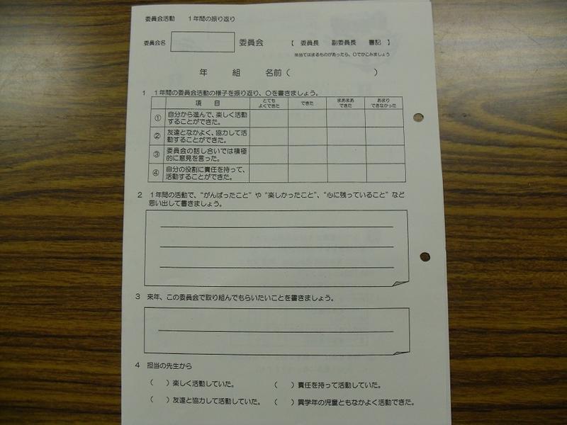 今年度の反省を基に振り返りカードを一人ずつ書き、担当の先生に提出しました。