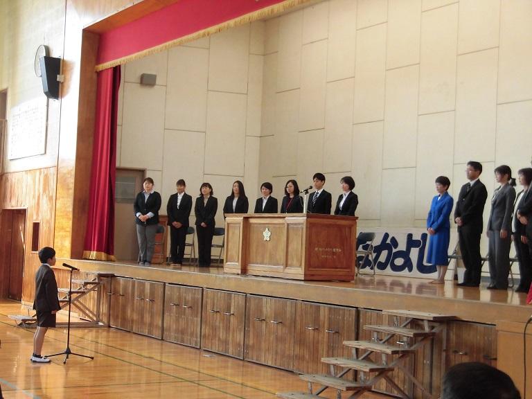 1年生、呼びかけ「ありがとう6年生」です。入学してきたときとは比べものにならないくらい、成長した姿を見せてくれました。