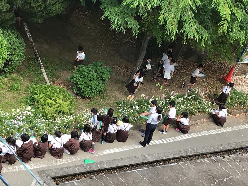 5時間目に中庭にある学級の花壇を、子どもたちが整備していました。
