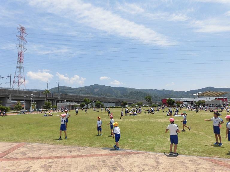 本日は朝から小雨でしたが、曇りに変わり、中庭や運動場も使える状態になりました。