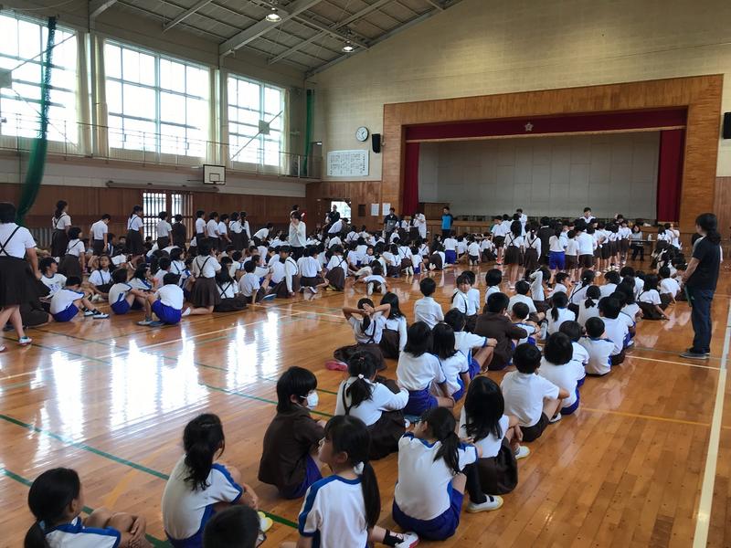 校長先生の自己紹介をクイズ形式でされ、子どもたちの心を一気につかんでおられました。