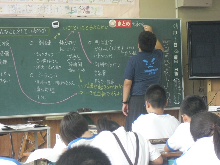 本時は消防の学習でした。八代市では昨年55件の火災が発生