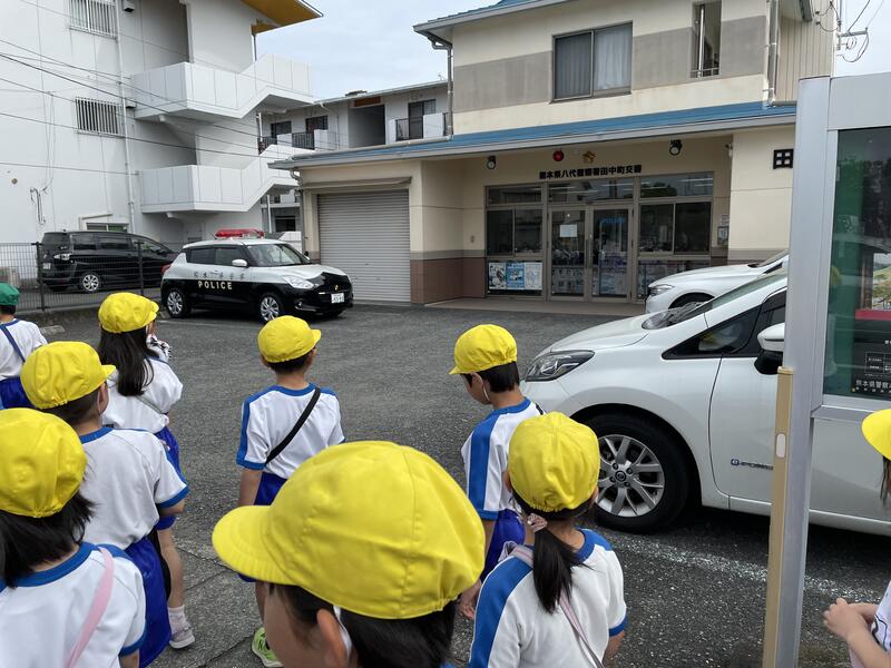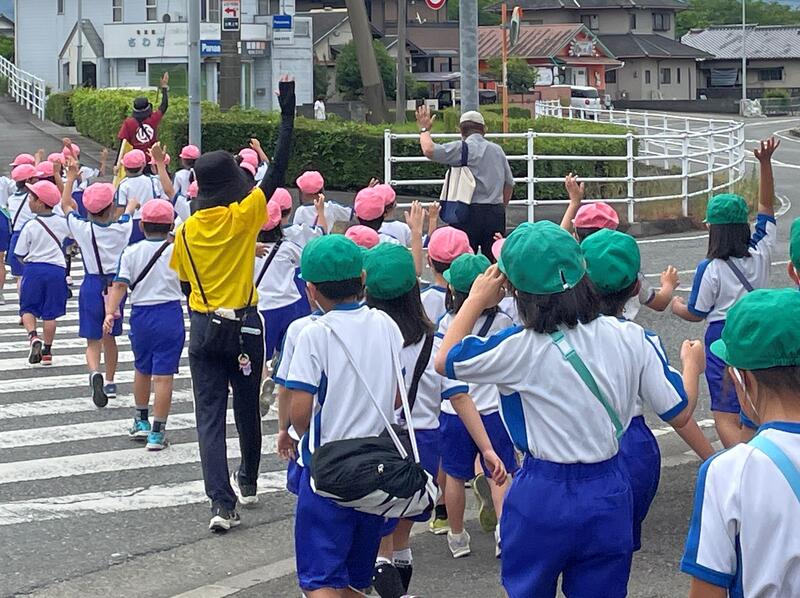 横断歩道では、先日の交通教室で学んだことを生かして横断歩道を渡っていました。