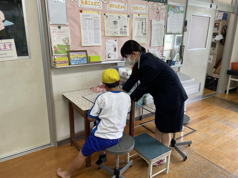 今日は、養護教諭の指導の下、怪我をした子どもへの対応をされていました。