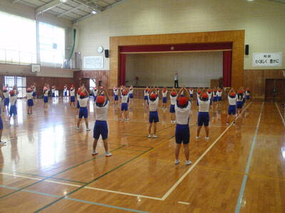 体育館では、密にならないように、人数を制限してマスク着用で練習しています。