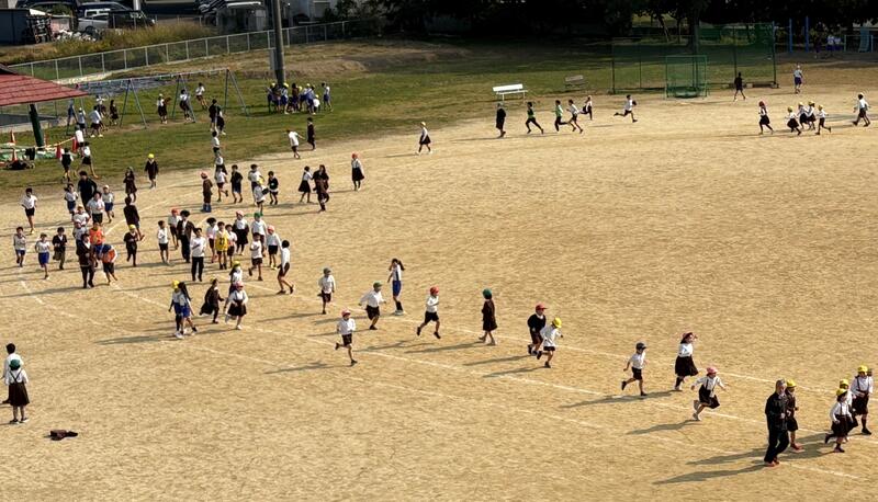 みんな自分のペースで運動場を走ることに取り組んでいます。