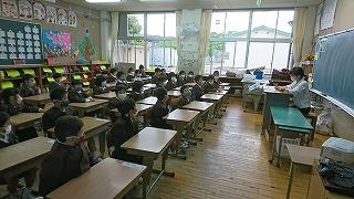 本年度は、新型コロナウイルス感染症予防のため、おうちの方には体育館で連絡や保健などについての説明を、子ども達には教室で担任の先生のお話を別々に聞いてもらいました。