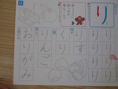1年生の教室では、ひらがなの学習をしていました。今日はひらがなの「り」を学習しました。長さの違いに注意しながら一文字ずつていねいに練習できていました。
