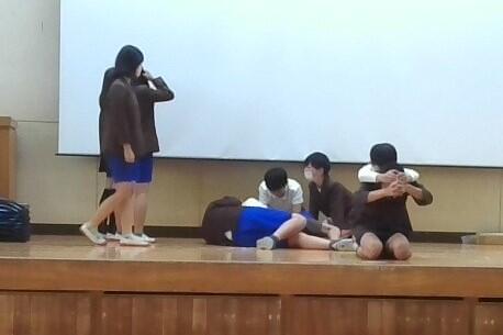 約5分間みんなで意見を出し合いました。意見を出し合い、少し練習した後に行った2回目の劇は、