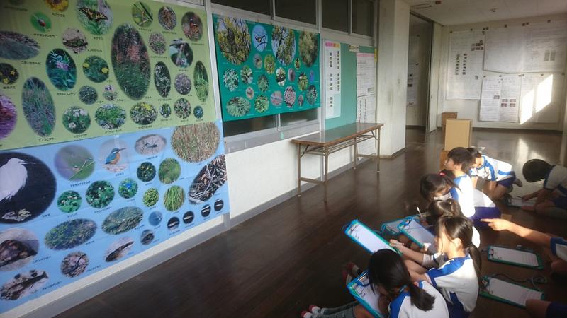 昨日から熊本県博物館ネットワークセンター所蔵物が理科室前に展示してあります。主な展示物は樹脂封入標本、パウチシート、布製パネルです。子どもたちはじっくり見て、シートにまとめていました。