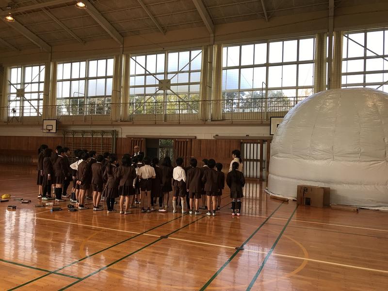 本日は理科ネットワーク事業として、さかもと八竜天文台の方においでいただきました。4年生「月と星」の学習でおもに星についての学習をしていただきました。プラネタリウムドームを体育館に設置していただき、子どもたちはわくわくの授業となりました。