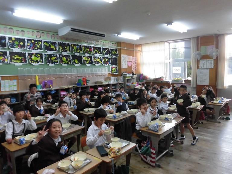 【4年生:給食】元気いっぱい、食欲満点の子どもたちでした。