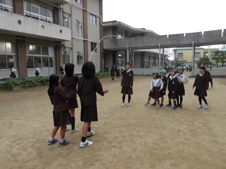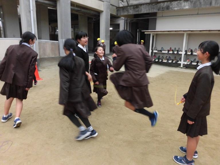 中庭は、縄跳びに挑戦する子たちで大賑わいでした。まさに縄跳び天国です。