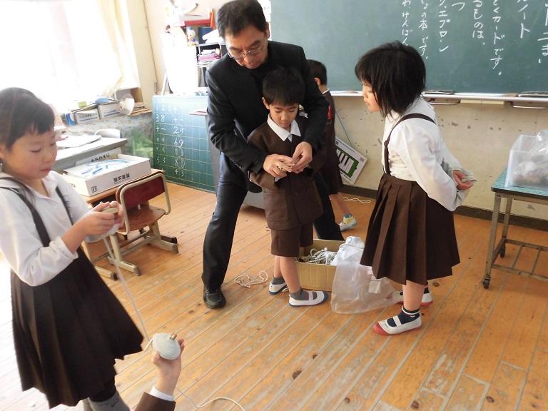 フェンス工事のためブランコが取り外してあり、遊ぶことができませんでした。先週末工事検査が終了し、今日の昼休み、校長先生がブランコを設置して下さいました。