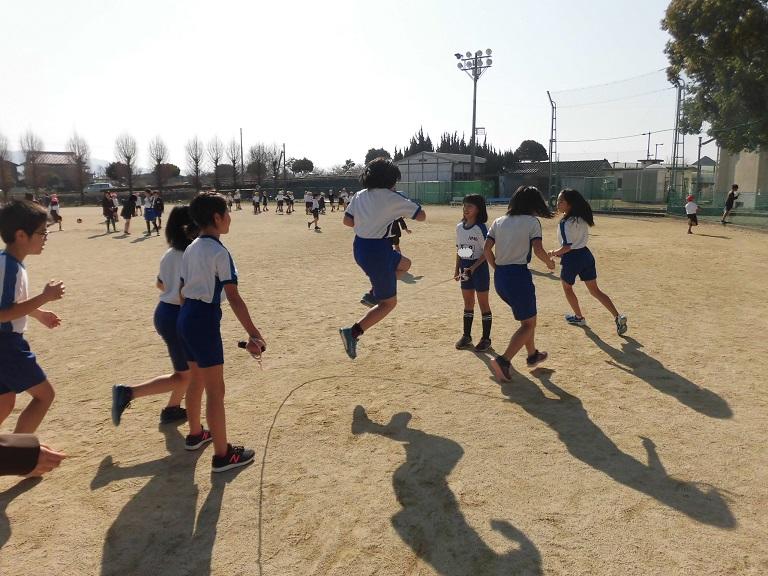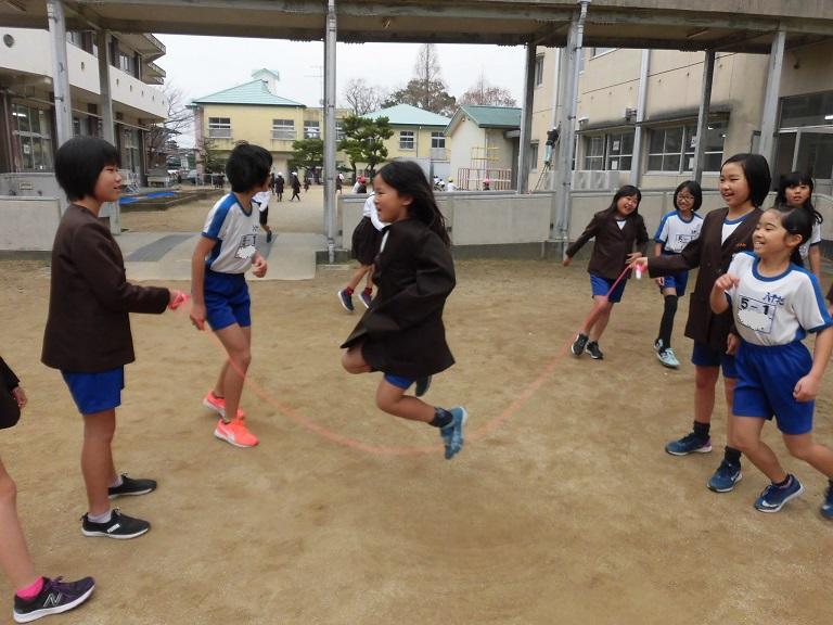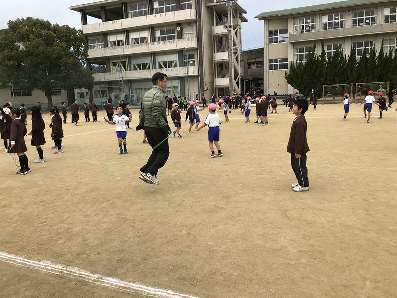 高学年の長縄跳びは目にもとまらぬ速さでした。