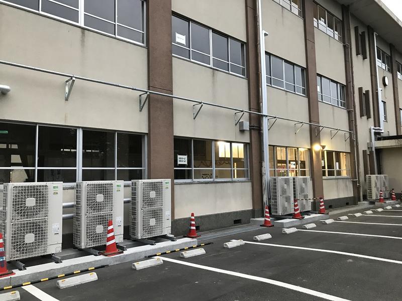 エアコン工事が急ピッチで行われています。室外機もずいぶん設置されてきました。夜間も土日も工事されている時があります。工事されてる方々、大変お世話になります。