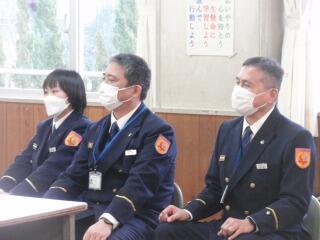 今日は最後の活動日で、消防士さん方に来校していただき、修了式を行いました。