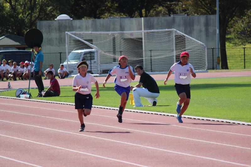 100m走。ゴールまで駆け抜けました。