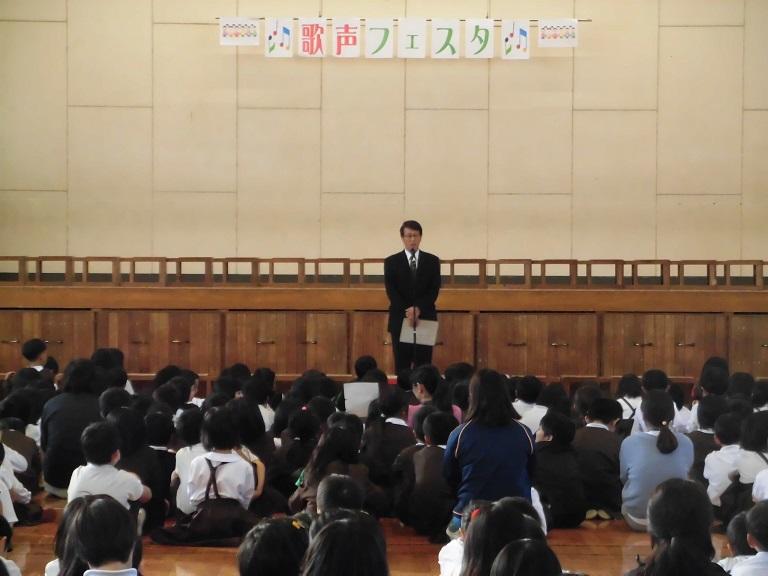 「八千把小はワンチームになれていますか。自分のクラスでは心や力を合わせ、目標に向かって頑張っていますか。人権月間である11月に八千把小のみんなが心を合わせ、いじめのないワンチームの学校にしてほしいです。そのためにまずはクラスがワンチームになってほいしいです。おもいやりでいっぱいの八千把小にしましょう。」うなずきながら聞いている子たち達がたくさんいました。心に響いていたと思います。