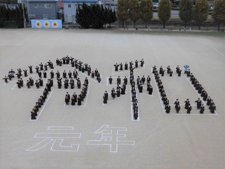 本日、6年生で「令和」の人文字を作成しました。