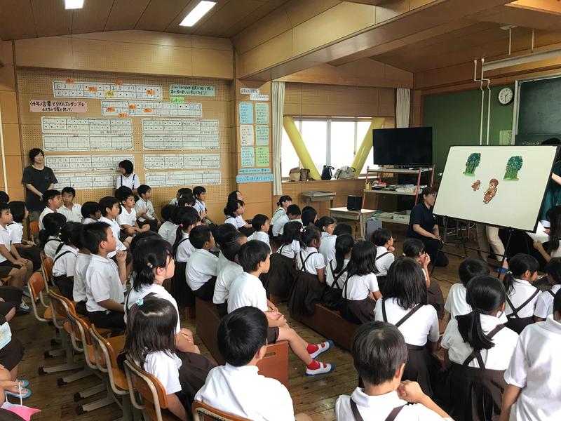 昼休みに開催されました。会場は子どもたちであふれ、廊下にも立ち見が出るほどでした。素晴らしい発表ありがとうございました。