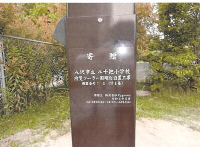 「株式会社Cygames」(サイゲームス)さんから、八千把小学校の東門のところに防災照明1基が寄贈されました。この防災照明は太陽光蓄電型で、平時は児童生徒や地域住民を見守る街灯として、災害発生時には避難者の安全な移動の確保や非常時電源として利用できます。