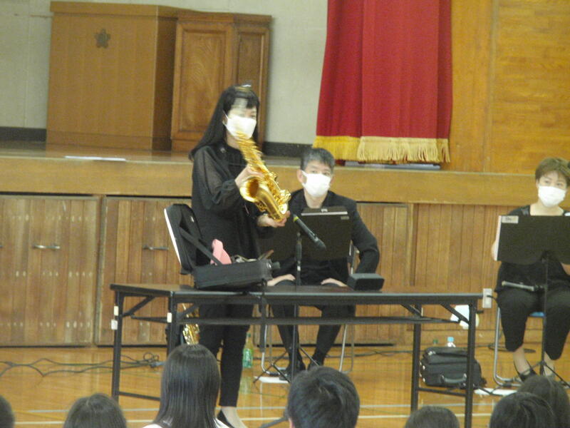 今日は、大阪から「Osaka Shion Wind Orchestra」というオーケストラの方々に来ていただき、管楽器等の演奏をききました。指揮者の体験もできた子どももいました。