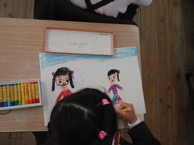 歓迎会は、屋外でする予定でしたが、あいにく雨天だったので、リモートで各学年の出し物を教室で視聴しました。1年生のお礼のダンスを披露してくれました。最後に6年生が学校クイズをしてくれました。かわいいダンスもあって、とても楽しい会になりました。6年生の子どもたちに感謝です。