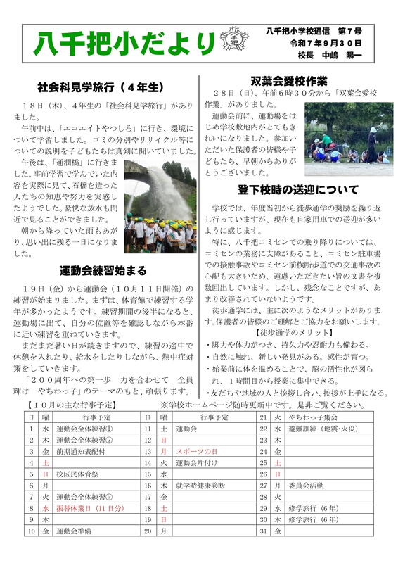 八千把小だより(R7八千把小学校通信第7号)