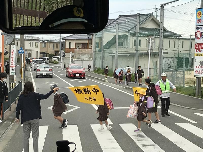 朝から元気なあいさつが聞こえてきました。たくさんの方々に見守られて登校できてます。