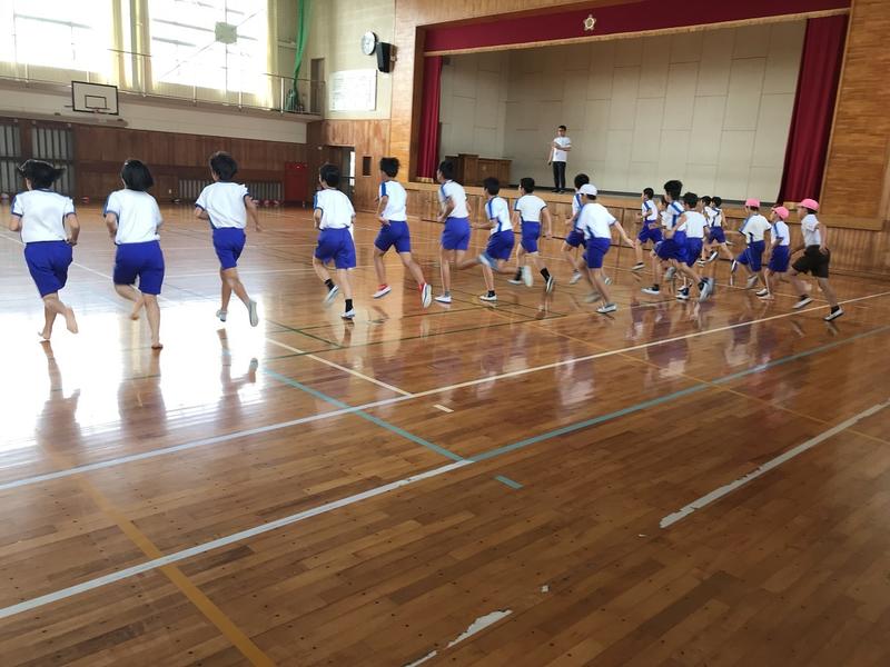今日も朝からスポーツタイムに取り組む子どもたちです。運動場や体育館で体力を高めていました。