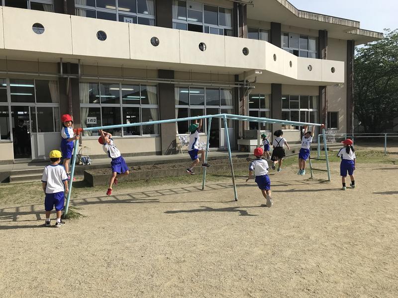 1年生の体育授業の様子です。遊具を使って安全な使い方を学習しました。