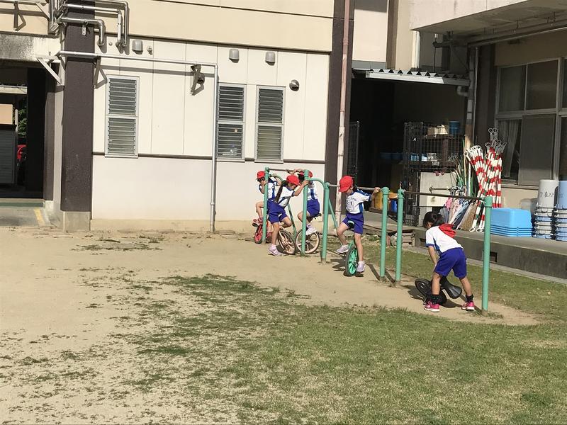本日は朝から小雨でしたが、曇りに変わり、中庭や運動場も使える状態になりました。