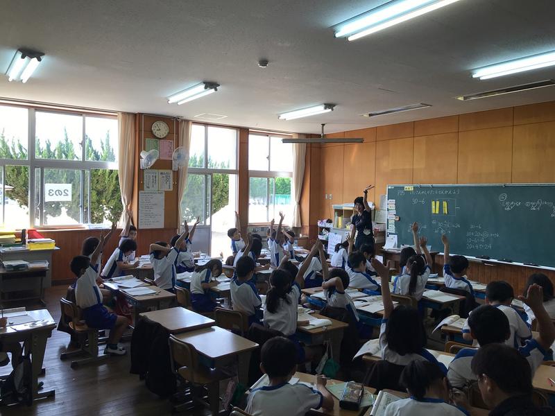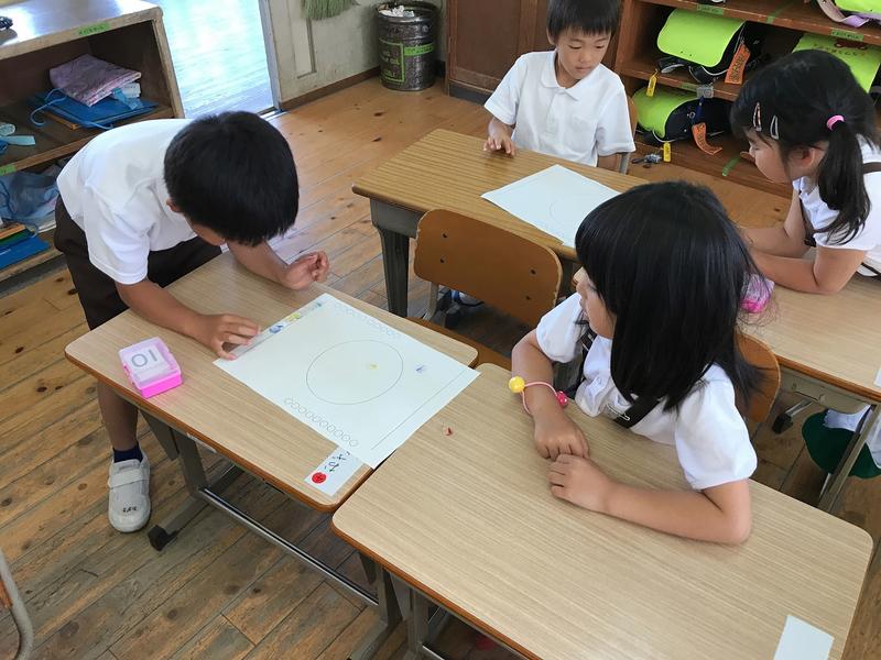 1年3組での算数の授業です。単元は「いくつといくつ」でした。今まで学習した数のまとまりを元気にテンポ良く答える1年生でした。