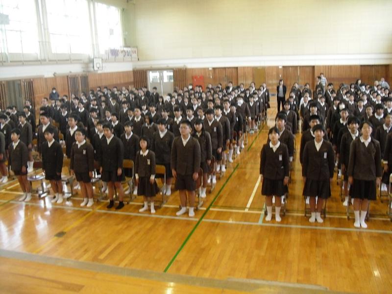 4月に部活動から社会体育へと移行します。つまり、今日が最後の部活動閉会式でした。これまで多くの方々に本校の部活動は支えられてきました。各部のキャプテンのあいさつから、感謝の気持ちをもっていることが十分に伝わってきました。今年度だけでなく、これまで部活動に対する皆様のご協力に感謝申し上げます。