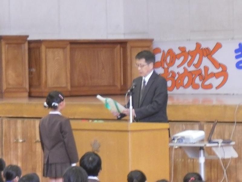 修了証を渡された後は、校長先生のお話がありました。各学年の子どもたちをほめられました。