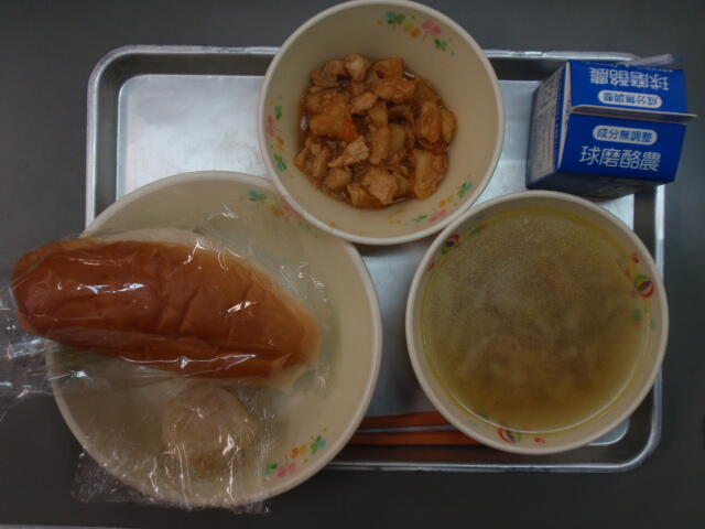 今日の給食のテーマは、昨日に引き続き「味の旅 熊本」でした。献立は、ミルクパン、鶏肉のトマト煮、白菜スープ、牛乳。そして、デザートにいきなりだんごでした。トマトは、地元八代が産地となっていて、子どもたちにもなじみの深い食材です。ミルクパンは、他のパンよりも甘くてふわふわです。