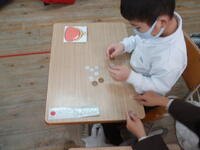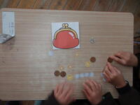 1年生の教室では、お金を使って算数の勉強をしていました。