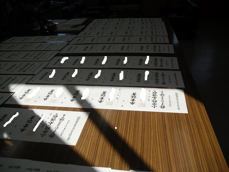 正解は、「校長室」で、机上のものは「卒業証書」です。以前から、校長室に行くと校長先生が毛筆の練習をされていました。6年生の名前を書く練習されていたのです。