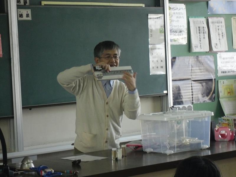 これまでに学習した電磁石の活用の授業でした。教室の中にも、スピーカーや扇風機など電磁石を使ったものがあるを知り驚いていました。