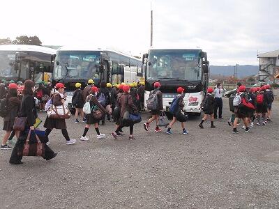 乗車する6台のバスは大きくてかっこいいバスでした。